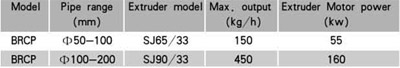 3、Unique calibration and cooling mode is capable of producing pipe whth diameter from 50 to 200mm, production speed is up tu 0.4~1.5m/min.