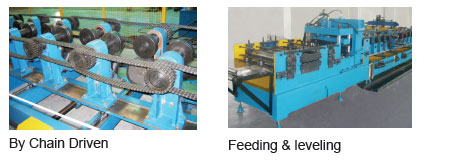 C/Z interchangeable Roll Forming Machine is fully-automatically controlled by PLC. Compared with other type C/Z purlin machine, the machine is pre-cutting and pre-punching type and can provide quick, infinite size change both for C type and Z type purlin. It’s reliable for running steadily, punching hole in a highly precision, high output and inerratic and smooth surface of the notch Technological Process: